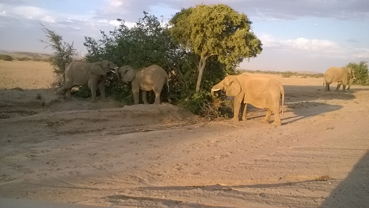The Brandberg mountain, the highest peak in the country at 2573m high can be seen in the surrounding plains. Breadthtaking landscape, a little bit of wildlife that includes the desert-adapted elephants, springboks and kudus are sometimes encountered.